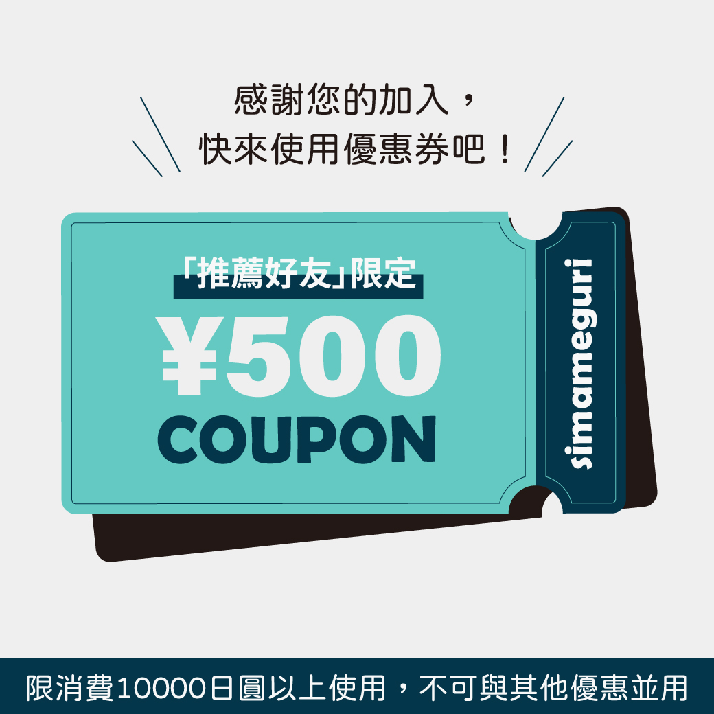 🎉🎉你和朋友都能各獲得 500日圓優惠券!🎉🎉